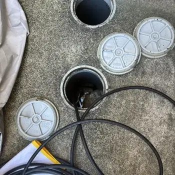 床下の排水管につまりが発生している可能性があります。状況確認が必要です。