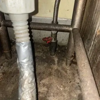 排水ホースと床下配管の繋ぎ目から水漏れ