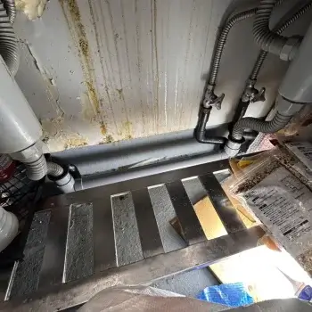 排水ホースと床下配管の繋ぎ目から水漏れ
