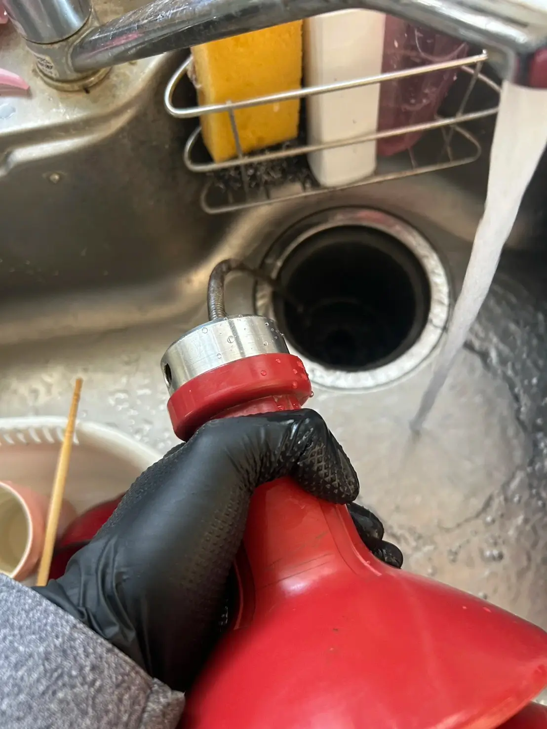 洗い物の途中で排水が全然流れなくなり、水がどんどん溜まってきて驚きました。
