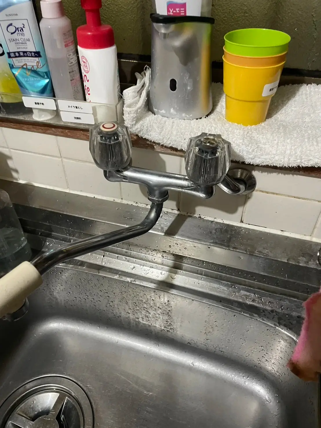 ハンドルを回しても止まらず、台所がびしょびしょになり、どうしようもなくなって台所専門チームさんに連絡しました。