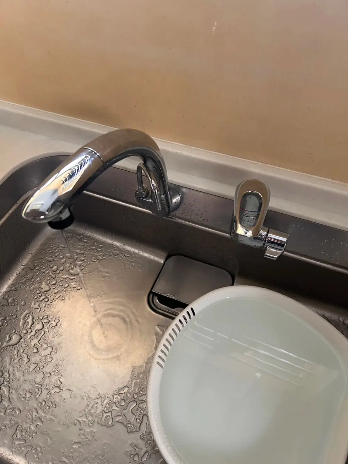台所の蛇口から水が漏れているのを見つけました。