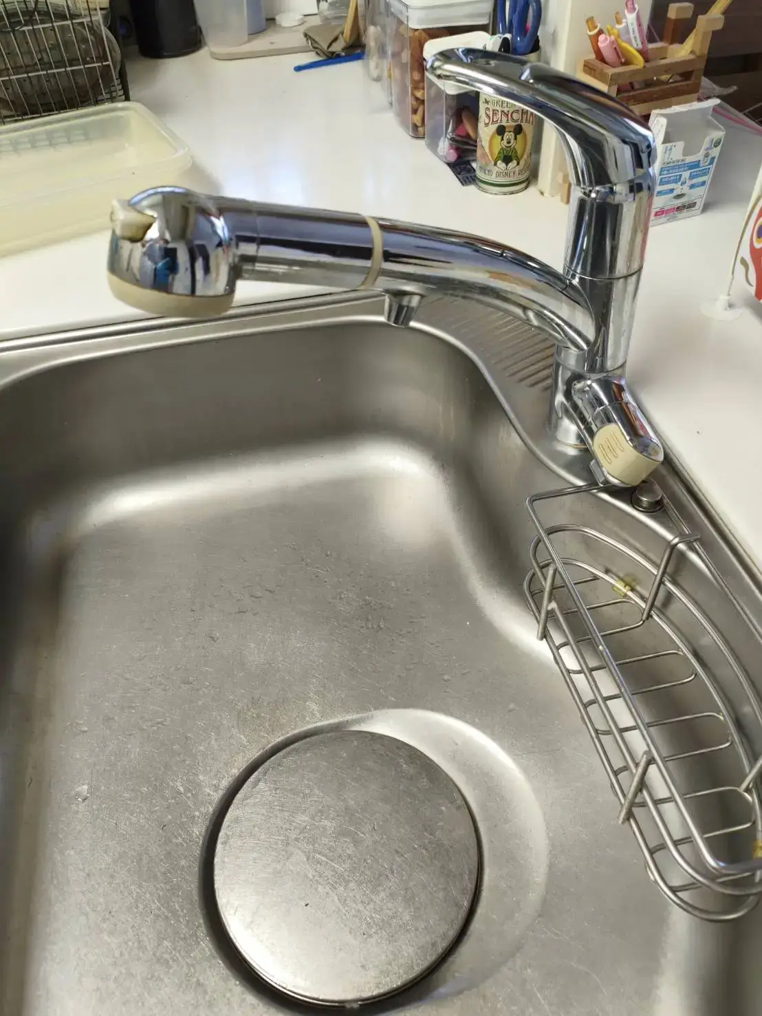 既存の水栓を取り外し、新しい台所水栓の設置作業を実施しました。